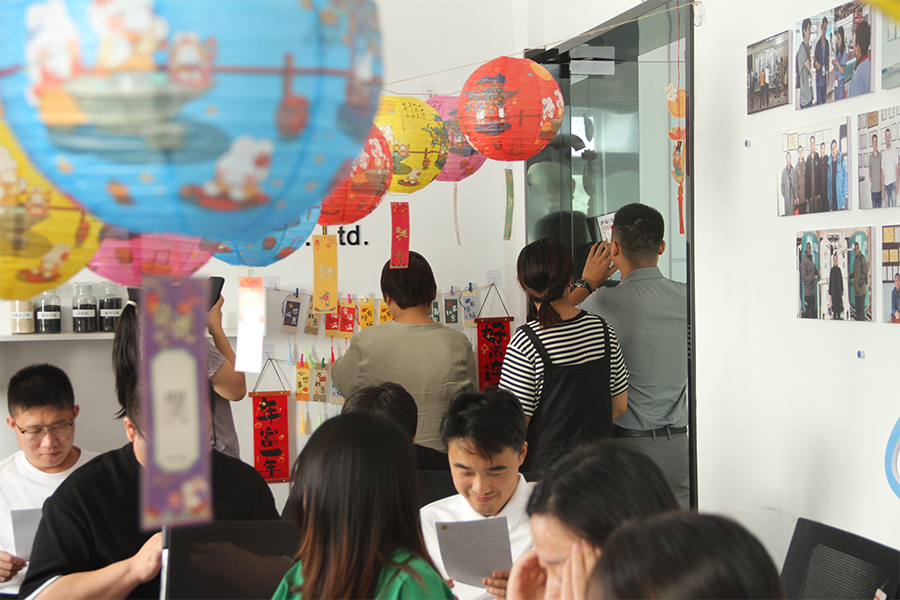 Sono state organizzate una serie di attività tradizionali, come la risoluzione di enigmi con le lanterne e la pittura di ventagli. L'aria era piena di risate durante queste attività, evidenziando le diverse capacità e l'ambiente armonioso all'interno del team Jiangsu Luoming.